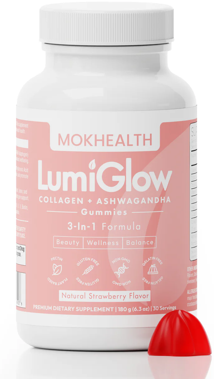 LumiGlow by Dr.MOK combines Glutathione, Collagen, and Vitamin C in one easy gummy for a natural beauty and health boost. This powerful blend supports hair growth, strong nails, glowing skin, overall and dental health. Glutathione helps detox and brighten skin, Vitamin C boosts collagen for firmness, and multi-type Collagen strengthens and repairs. LumiGlow makes it simple to get all these benefits in one daily gummy.